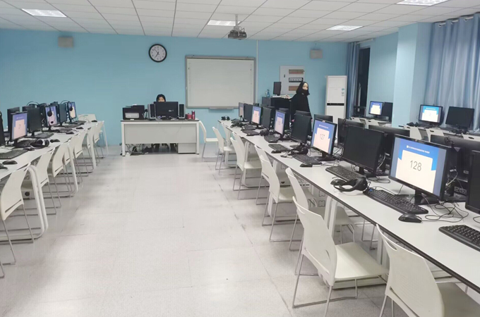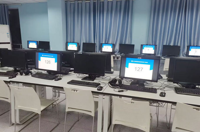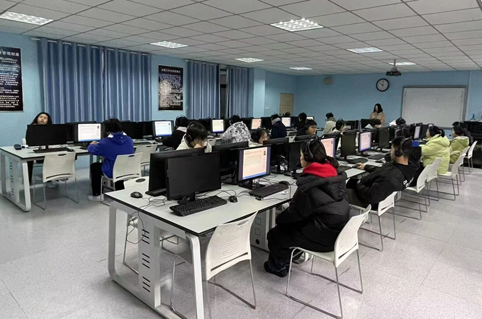 学校信息技术老师连夜加班调试设备,为第二天口语考试的顺利进行做好充分准备。