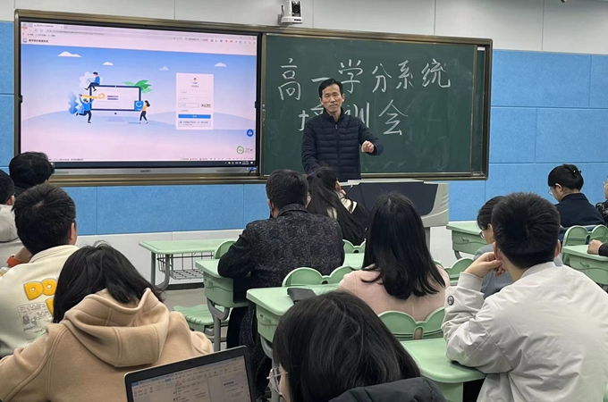 本次培训邀请了科大讯飞驻李乐乐工程师为高一全体教师进行系统培训。在学分认定的在培训过程中,李乐乐配合案例的使用,详细介绍了学分认定系统的具体操作流程,以及学分录入中容易出现的问题及解决办法。李乐乐讲解完成之后,大家相互交流并提出自己的疑惑,汪群主任和李乐乐都进行了详细的解答,让老师们对学分系统的使用有了更加清晰的了解。
