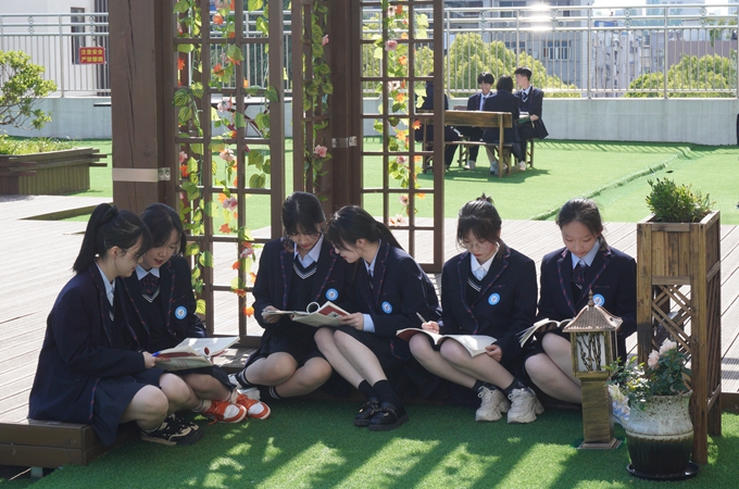 现在的空中花园百花齐放,好一派的春意盎然的景象。同学们在美不胜收的花海中畅游心旷神怡,在知识的海洋中遨游安逸自在。