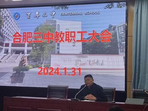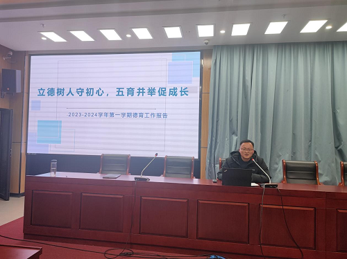 副校长杨庆吉以《立德树人守初心 五育并举促成长》为主题,就2023年学校德育工作进行总结。他对教师的奉献精神表示感谢,同时希望教师们在寒假继续落实德育工作,加强家校沟通,给学生布置适当的德育实践任务,促进学生身心健康发展。