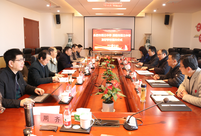 校党委书记马剑致欢迎词,为大家详细介绍了点点手机版下载官网app的办学历史、办学条件、特色化发展以及近年来的办学成果。他希望与淮南三中缔结友好学校,并通过开展教育教学科研合作项目、学生手拉手结对、教育考察、访问交流等活动,实现优势互补,加快高度融合,共同发展,持续共赢,携手共创美好未来。