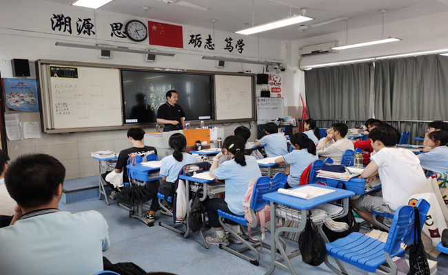 张黎明向同学们分享了自己的人生经历,告诉同学们要着眼于人生之路的发展,以高中三年的努力奋斗作为往后人生向上发展的动力。他强调,在最后的关键时刻,同学们要以坚定的步伐冲向最后的胜利线。