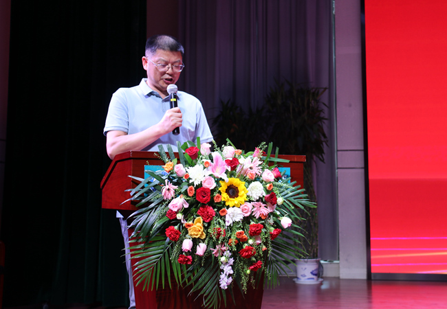 “安徽省优秀教师”刘守文作为教师代表发言。他分享了多年来的教育经验和智慧,介绍了自己如何坚持落实立德树人教育根本任务,实现个人专业成长,始终做到潜心教学、静心育人。他表示将继续不忘初心,努力奋斗,作“教育家精神”的坚定践行者。