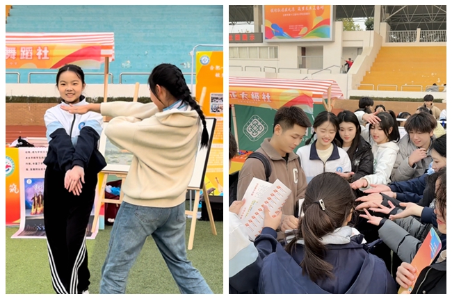 缤纷社团展风采,筑梦未来正当时。为进一步加强中小学社团建设管理,展现合肥市中小学生丰富多彩的校园文化生活和蓬勃向上的精神风貌,推广优秀社团实践探索的有益经验,2024年12月7日下午,合肥市第三中学由校团委副书记陈磊、张盖茨老师带队,带领30余名舞蹈社学生前往合肥市一六八中学参与了合肥市第十三届中小学社团展示活动。本次合肥市中小学社团展示共有60多个社团展示,现场气氛热烈。