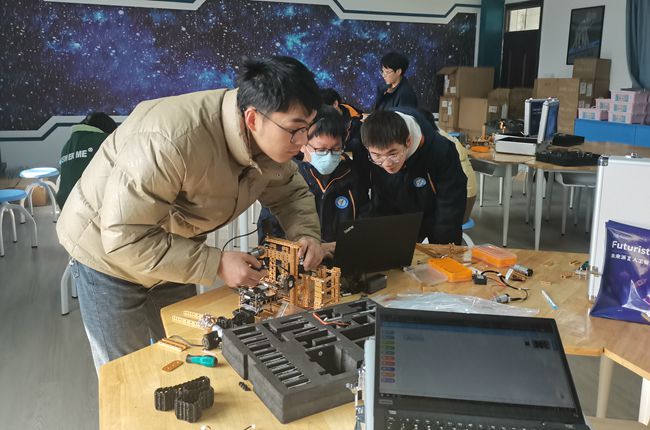学校以创建安徽省特色普通高中为契机,积极探索打造科教品牌,形成了以机器人创客教育、人工智能实践创新教育以及无人机科技教育为特色的科教品牌。在科技创新人才培养实践中,学校把科技教育纳入学校发展规划和工作计划,建立完善的科技创新人才培养机制,同时积极拓展课程领域,丰富特色课程资源,构建支撑特色发展的课程体系,开发了《人工智能》、《未来派》和《爱上无人机》等校本教材,并将科技教育融入课堂,培养学生的创新思维;以一年一度的校园科普周等活动为载体,为学生施展科技才能提供平台,组织开展科技发明、科技制作、科技实验、科技论文等科技创新活动,培养学生的科学志趣和创新精神;组建科技类社团,配备专职指导教师,定期开展培训,组织学生参加国家、省、市级科技实践创新大赛;以科技创新教育为抓手,加强机器人创新实验室、人工智能实验室、创客实验室建设,推进项目式学习的应用和实践,以此推动科技创新教育普及和提高相结合,助力科技创新后备人才的蓄能和成长。学校科信处团队注重理论联系实际,对接高校、科协等,开展课题研究,形成了行之有效的新时代普通高中科技特色教育与创新素养培育体系。