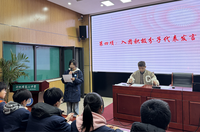 高一8班方乐怡做代表发言。她在发言中表达了对团课学习的期待和决心,表示将倍加珍惜团课学习机会,严格遵守纪律,认真学习,努力提高自身政治素养和思想觉悟,争取早日成为一名合格的共青团员。