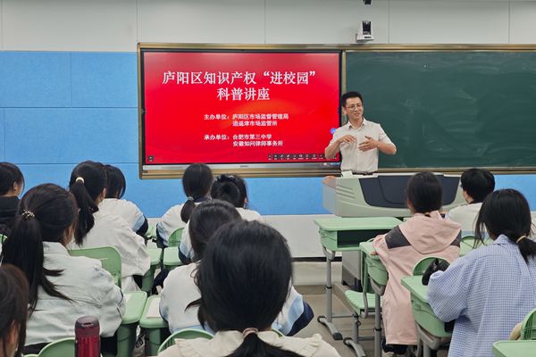 为扎实推进国家知识产权战略落地,厚植青少年知识产权保护理念,4月28日,庐阳区逍遥津市场监管所联合安徽知问律师事务所,走进合肥市第三中学,成功举办 “知识产权进校园” 科普宣传活动,为师生们带来一场干货满满的知识盛宴。