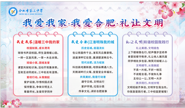 各班级积极开展“我爱我家 我爱合肥 礼让文明”主题班会。班会上,同学们踊跃发言,分享自己在家庭中践行文明礼仪的小故事,探讨如何在日常生活中做到爱护公共环境、遵守交通规则、礼让他人。主题班会的开展,让文明理念在班级中生根发芽,进一步凝聚了全体学生的文明共识。