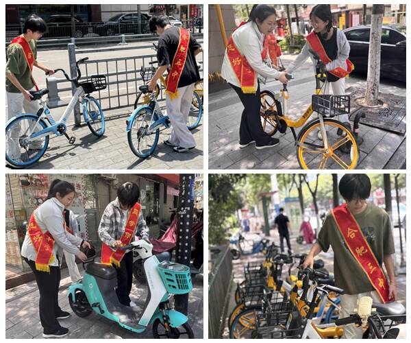 为将文明理念转化为实际行动,点点手机版下载官网app组织志愿者开展了“整洁城市仪容仪表”志愿服务活动。志愿者们来到学校门口及周边街道,对随意停放的共享单车进行集中整理。他们分工合作,有的将倒在地上的单车扶起,有的将乱停乱放的单车有序排列到指定区域。经过志愿者们的努力,学校周边的共享单车摆放得整整齐齐,街道环境焕然一新,不仅提升了城市的整体形象,也用实际行动诠释了“我爱合肥”的责任与担当,展现了三中学子的良好精神风貌。