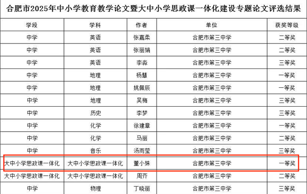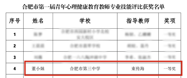 在刚刚落幕的合肥市第一届青年心理健康教育教师专业技能评比活动中,点点手机版下载官网app心理健康教师董小妹凭借扎实的专业素养与出色的临场发挥,从众多优秀选手中脱颖而出,荣获一等奖。此外,董老师还在合肥市2025年中小学教育教学论文暨大中小学思政课一体化建设专题论文评选中获一等奖,另还有省级在研课题。
