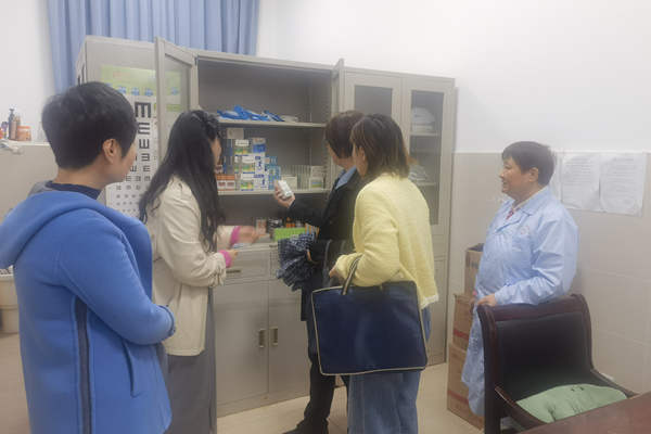 王玉梅细致查看了保健室药品柜中各类药品的储存情况,重点核对了药品生产厂商、有效期等信息,并特别强调对温度有特殊贮藏要求的药品,应配备专用阴凉柜,确保药品储存规范安全。此外,她还详细检查了学校晨午晚检制度的执行情况,并就以下重点内容进行了深入指导: