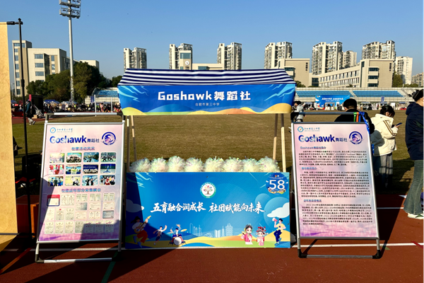 合肥市第三中学Goshawk舞蹈社团成立于2021年,意为无畏之鹰,象征“勇敢、力量、拼搏、自由”,开展主要舞种包括:中国舞、街舞、啦啦操、健美操、拉丁舞、国标舞,社团指导老师陈磊具有高级啦啦操教练员、国家级啦啦操裁判员、中国啦啦操金牌导师、国家一级健美操裁判员、儿童青少年体适能教练员等资质。社团近年来主要获奖情况:2021-2025年全国啦啦操联赛(合肥站)连续五年蝉联集体街舞、双人街舞、双人爵士等核心项目冠军;2021-2025年安徽省青少年体育舞蹈锦标赛连续五年蝉联多项冠军;第八届、第九届中国(南京)啦啦操公开赛集体街舞亚军;2022-2024年合肥市阳光体育啦啦操比赛连续三年蝉联高中组集体街舞、双人街舞、双人爵士、双人花球冠军;2021、2022年全国啦啦操总决赛连续两年蝉联多项冠军;2022-2025年全国啦啦操锦标赛获得多项冠军;2023年代表安徽省参加中华人民共和国第一届学生(青年)运动会中学组双人街舞啦啦操项目。