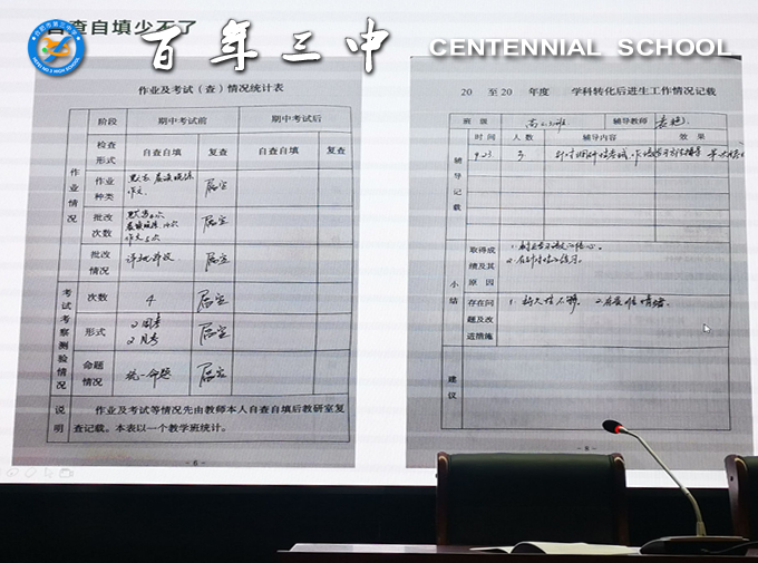 首先,教科室副主任袁艳对期中教学检查做通报。她指出教师业务手册及教案检查存在的问题。同时从检查时间、检查形式和检查要求三个方面对后期教学检查进行说明。特别是对如何正确规范的填写教师业务手册做了指导。