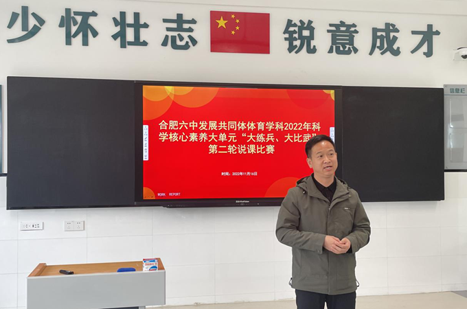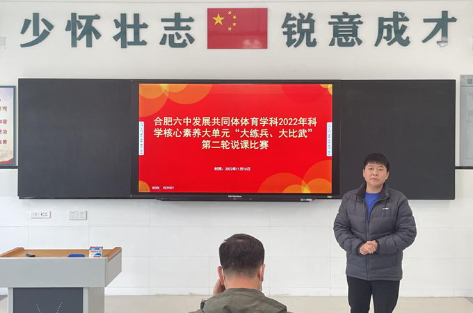 为落实《合肥市普通高中“双新”国家级示范区建设基于学科核心素养大单元课堂教学“大练兵•大比武”活动方案的通知》精神,提高教师的教育教学水平和理论知识素养,深入探索基于学科核心素养的大单元教学,落实“大单元”教学建构的课堂,2022年11月16日上午8时,合肥六中发展共同体体育学科2022年科学核心素养大单元“大练兵•大比武”遴选活动在合肥六中菱湖校区举行,本次活动主题为大单元设计说课。我校体育教师唐正现作为选手参加了本次活动。点点手机版下载官网app体育学科主任陈磊、体育教师俞琳玲也来到现场全程观摩了本次活动。