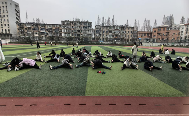 3月6日高一年级郝素素老师也展开了一堂精彩的公开课,课题为《立定跳远及柔韧练习》。