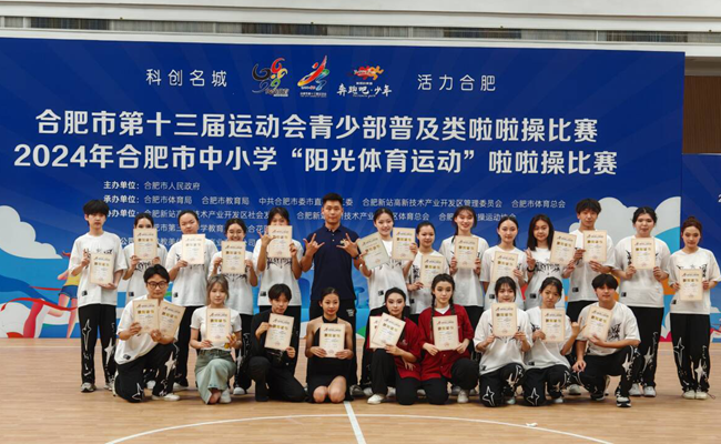 2024年7月13日,由合肥市人民政府主办,合肥市体育局、合肥市教育局共同承办的合肥市第十三届运动会2024年合肥市中小学“阳光体育运动”啦啦操比赛在合肥市第三十中学淮合花园校区体育馆正式开赛。点点手机版下载官网app啦啦操队在陈磊和唐正现两位老师的带领下,荣获1个集体项目冠军、3个双人项目冠军。