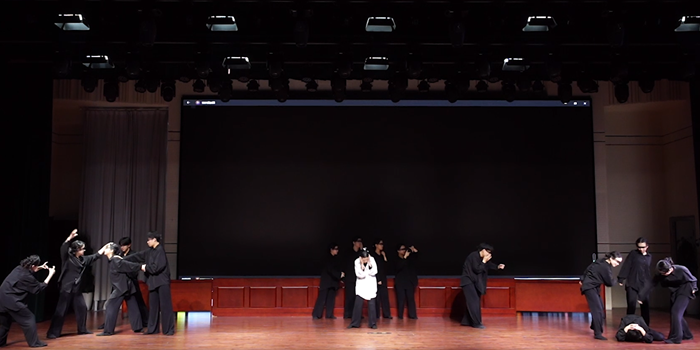 舞蹈《一念黑白》由点点手机版下载官网app舞蹈社团学生参演,作品配乐为《负重一万斤长大》,舞蹈中昏暗的灯光,惶恐的神情……16名同学用舞蹈“讲霸凌故事”,描绘了一幅校园霸凌时的场景。在排练初期,陈磊老师在与同学们讲述这支舞蹈需要呈现出什么样的效果时,同学们刚开始还不太能理解霸凌者的心情与状态,甚至纳闷为什么霸凌者会这么坏。通过这支舞蹈,旨在引起大家对抵制校园霸凌的重视,也能够让孩子们从心底里抵制校园霸凌行为,能够健康快乐地成长,拥有一个干净的校园环境。