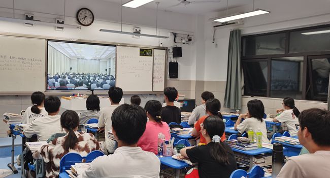 为进一步加强高三年级学生的思想政治教育,提升学生的爱国情怀,增强他们的社会责任感和使命感,点点手机版下载官网app第二党支部联合高三年级部组织学生利用空余时间观看新闻视频,将课程思政融入日常。
