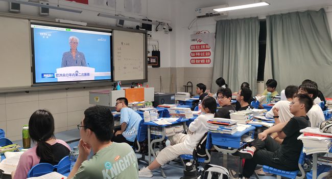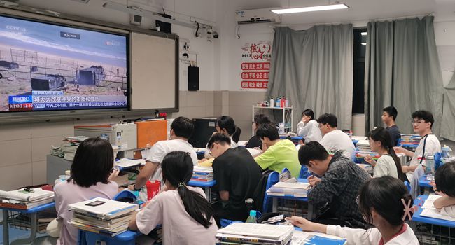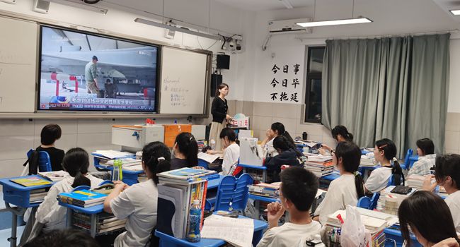 在观看新闻视频过程中,学生们全神贯注,认真思考。一则则振奋人心的新闻报道,如同一颗颗思想的火种,点燃了学生们的热情。从科技创新的重大突破到乡村振兴的感人故事,从航天英雄的无畏奉献到环保先锋的默默坚守,这些真实的案例让学生们深刻感受到了时代的脉搏和自己肩负的使命,他们被新闻中的先进事迹所感动,被国家的发展成就所鼓舞。同时,教师们结合新闻内容和学科特点,挖掘课程中的思政资源,通过适时进行讲解和引导,帮助学生理解新闻背后的深刻含义,将思想政治教育贯穿于整个观看过程。