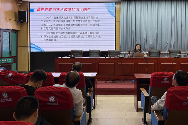 培训伊始,袁艳副主任围绕“课程思政与学科教学的深度融合”展开讲解。她强调,各学科需依据自身性质与特点,精准把握挖掘拓展的重点内容,将思想价值引领全方位贯穿于教学计划、课程标准、课程内容、教学评价等主要教学环节之中。各学科要充分发挥自身的育人功能,在知识传授中实现价值引领,达到润物细无声的育人效果。