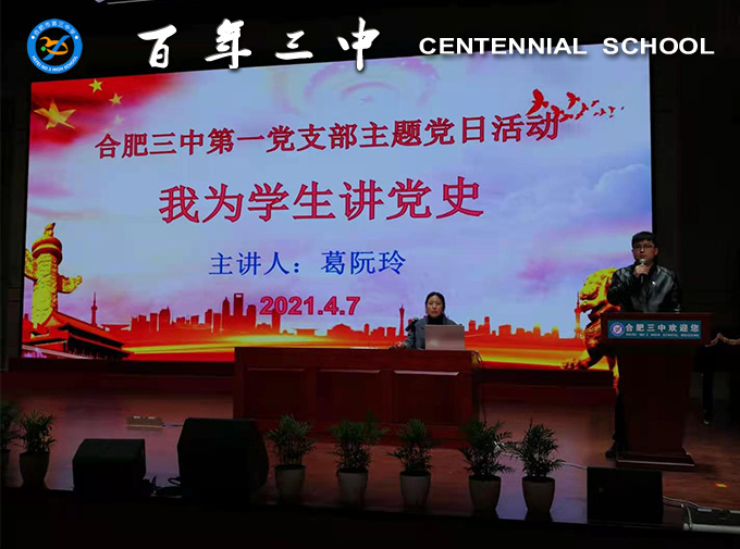 4月7日下午,第一党支部主题党日活动——我为学生讲党史在正谊会堂如期举行,由第一党支部宣传委员葛阮玲同志为全体高一年级同学作党史知识讲座。活动由支部书记滕智智主持,第一党支部全体党员同时参加了本次活动。