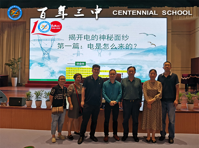 在校家委会协助下,本次讲座邀请到高一(7)班家长徐金林工程师。他结合自身的工作特点,给同学们带来了一场主题为《揭开电的神秘面纱》专题讲座。徐金林是中国电力行业设备协会高级专家,安徽省电力公司优秀专家人才,安徽省电力系统劳模。