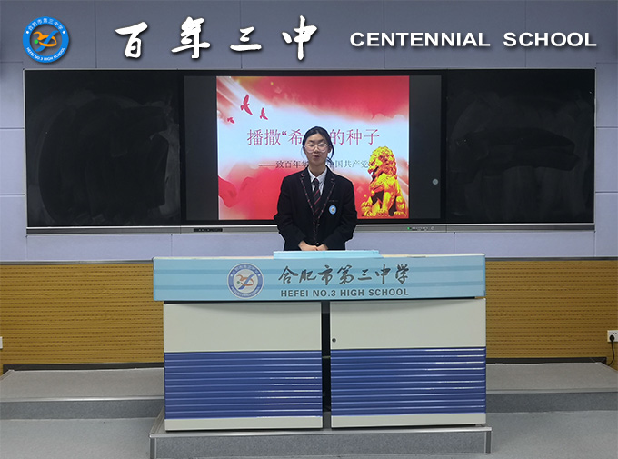 我与祖国共奋进,我为崛起献青春。相信三中学子一定能够带着对党的感恩、热爱和祝福,投入到学习、生活中去,砥砺前行,以优异的成绩迎接建党100周年。