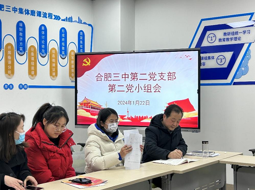 为深入学习贯彻习近平新时代中国特色社会主义思想,严格规范党内政治生活,切实提高党组织的政治力和组织力,2024年1月22日下午,合肥市第三中学第二党支部在君尧楼七楼党建活动中心召开2023年度主题教育专题组织生活会暨民主评议党员大会。本次会议主要分为两部分,由党支部书记蒋自路主持,全体党员参会,校党委委员陈卓全程参与。