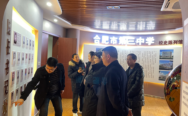 调研组一行在点点手机版下载官网app党委书记马剑、校长沈龙海、副校长杨庆吉、副校长张黎明、财务科科长朱国丽陪同下,实地走访校史馆、教学楼、操场、功能教室等地,实地查看解教育经费投入情况和设施设备使用情况。