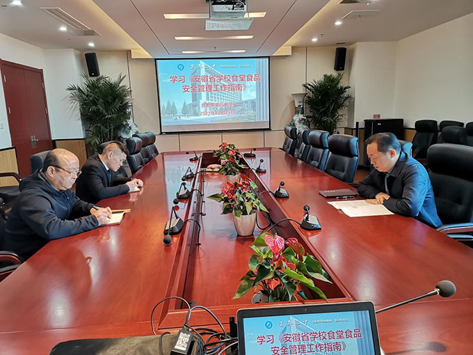 会上,毛晓斌校长首先带领大家认真学习了《安徽省学校食堂食品安全管理工作指南》文件的所有章节,从制度上墙到人员管理;从食品安全自查到食品采购运输;从食品储存、加工到食品留样等,都逐条进行了详细解读,深刻领会文件精神,同时提出要充分认识学校食品安全工作的重要性,严格抓好食堂日常监管及规范操作,明确了学校食品安全管理的最新要求。毛晓斌强调:学校食品安全与营养健康事关师生身体健康,事关亿万家庭幸福,事关社会和谐稳定,食品卫生安全工作不能有丝毫的闪失和懈怠,必须警钟长鸣,常抓不懈,驰而不息。