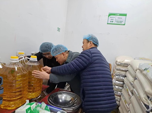 为全力做好假期节后开学保障工作,落实校园食品安全管理制度,2月18日大年初九上午,当全校师生还沉浸在浓浓的年味之中时,副校长张黎明组织总务处相关人员对食堂的开学准备工作进行检查。