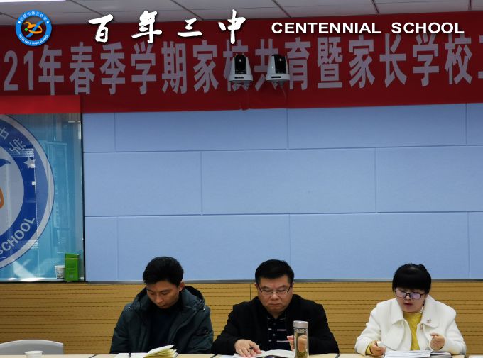 李晓娟向家委会展示了2020年学校德育工作以及各方面取得的成绩,介绍了新学期学校德育工作的重点是在科学防疫的前提下,继续落实立德树人的根本任务,加强班主任团队建设及学生的品德发展教育,促进常规管理精细化、学生活动品牌化,坚持五育并举,提升育人水平,培养德智体美劳全面发展的三中学生。
