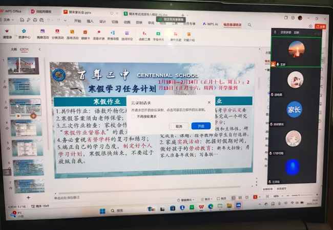 随着寒假的开始,为了进一步加强家校合作,确保学生度过一个安全、充实、有意义的假期,点点手机版下载官网app高一年级于2025年1月24日成功召开线上家长会。本次家长会以“一路同行,同心筑梦”为主题,通过线上平台与家长进行交流,共同探讨学生在假期期间的学习与生活安排。