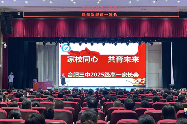 2025年9月12日,合肥市三中高一年级家长会顺利召开。本次家长会以“家校同心,共育未来”为主题,旨在加强家校沟通,帮助新生家长了解高中阶段特点,共同助力学生顺利适应高中生活。