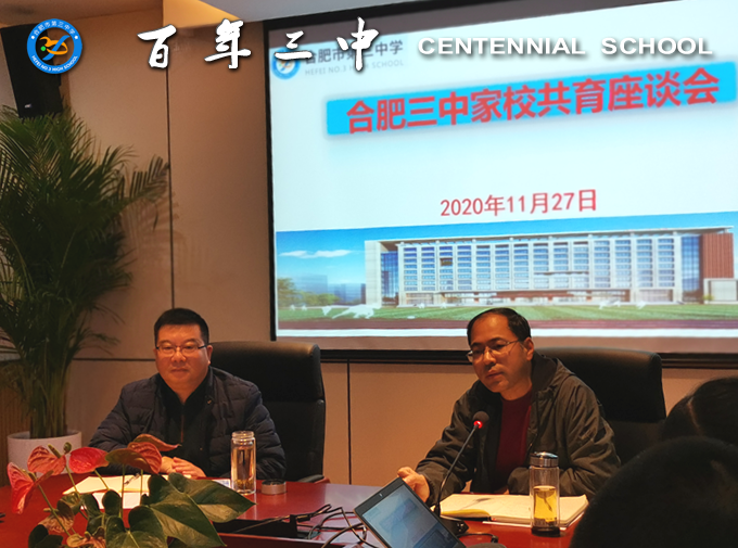 马剑从三个方面做总结发言。首先,讲述了学校历史发展进程。作为合肥市一所100年办学历史的学校,见证了合肥的发展,更见证了合肥教育的发展,向社会输出了大批的优秀人才,作为家长、教师和学生都应该要有文化自信,为三中的历史感到骄傲。其次,向各位家长汇报了学校领导班子的工作情况:组建了实力颇强的领导团队;对校园、校貌进行了改造,重塑学校文化,努力打造精致有魅力的校园形象;推进年级部“扁平化”管理,提升管理效率和育人能力。最后,感谢各位家长真诚的建言献策,学校会及时将大家的建议梳理分类,传达至各处室和级部,结合学校实际优化管理,提升办学水平和办学质量,为新的百年三中奋斗拼搏。
